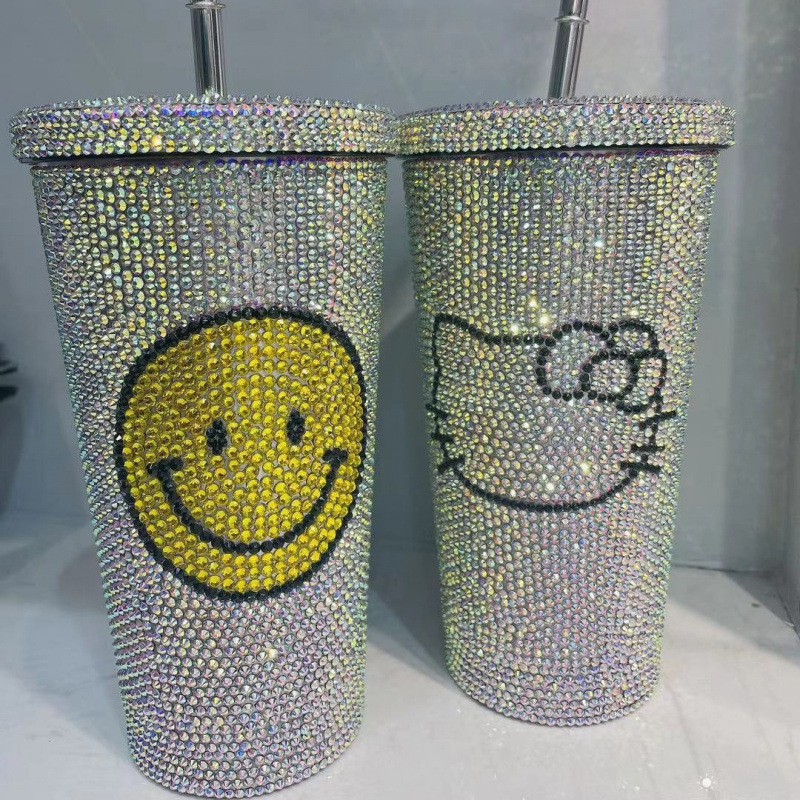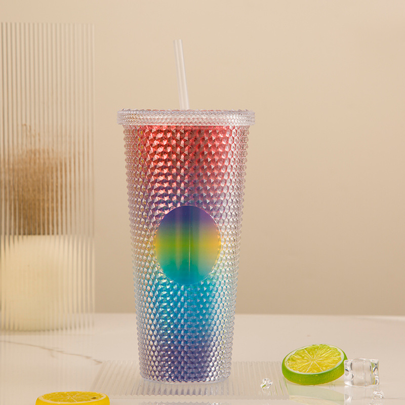 手作りDIYドリルカップ二重プラスチックストローカップカスタマイズ可能なパターンins高颜値ネット赤カップ