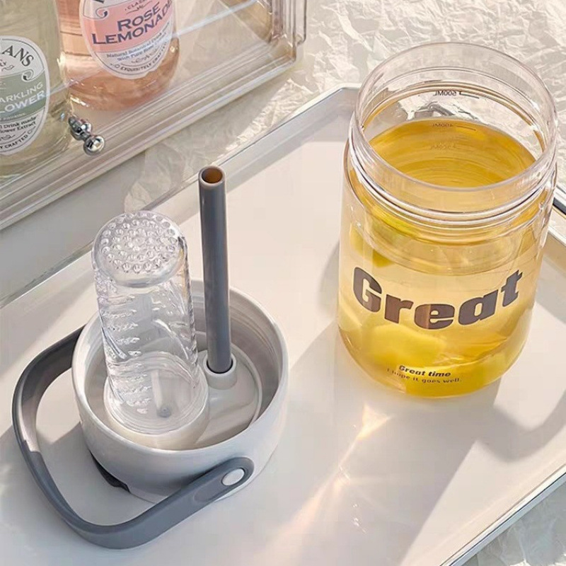 プラスチックの手提げコップの大容量はお茶を持っています。