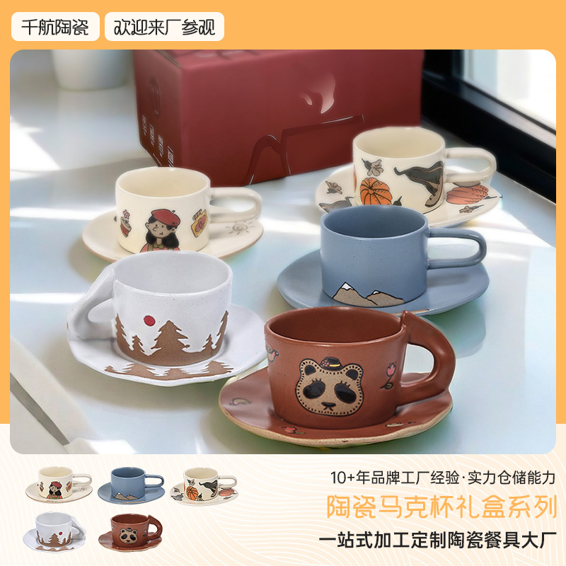 手描きコーヒーカップ&ソーサーギフトセット カップルカップ&ソーサー 彼女へのプレゼント 純手作り 高級感あふれる陶器カップギフト