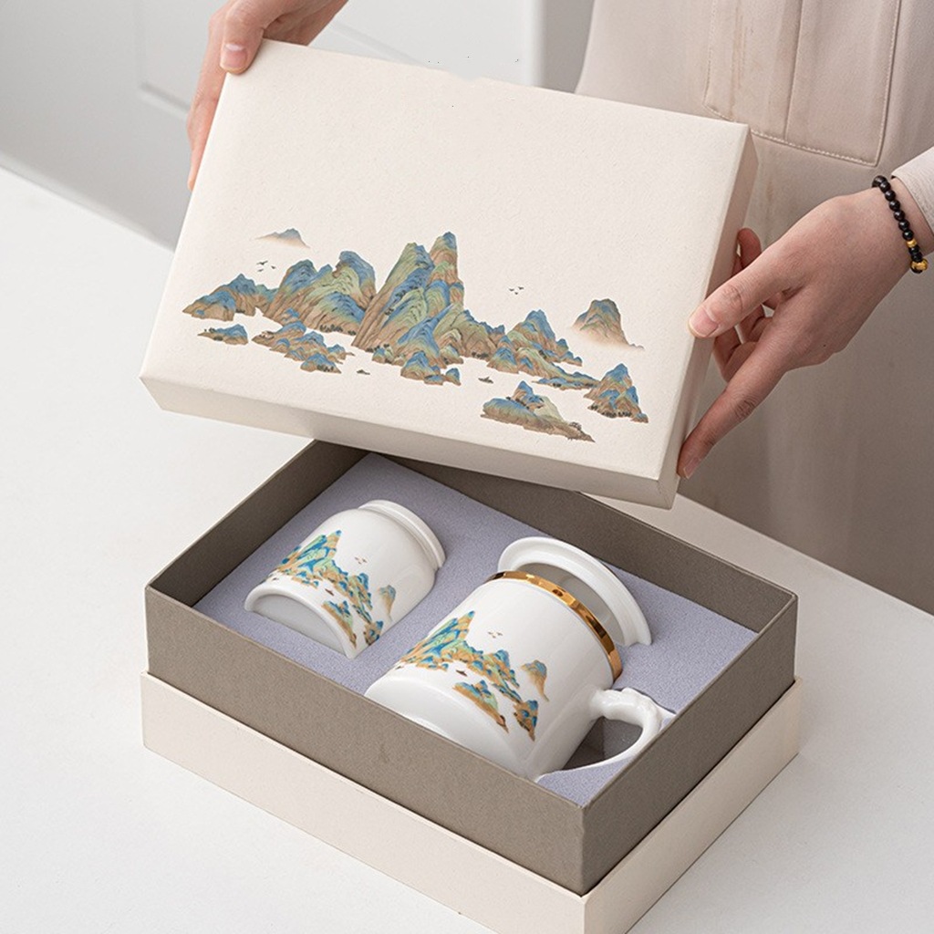 ボーンチャイナウォーターカップカップルカップギフトカップダブルカップギフトボックスセットマグハイエンドプノンペンハンドル絶妙な
