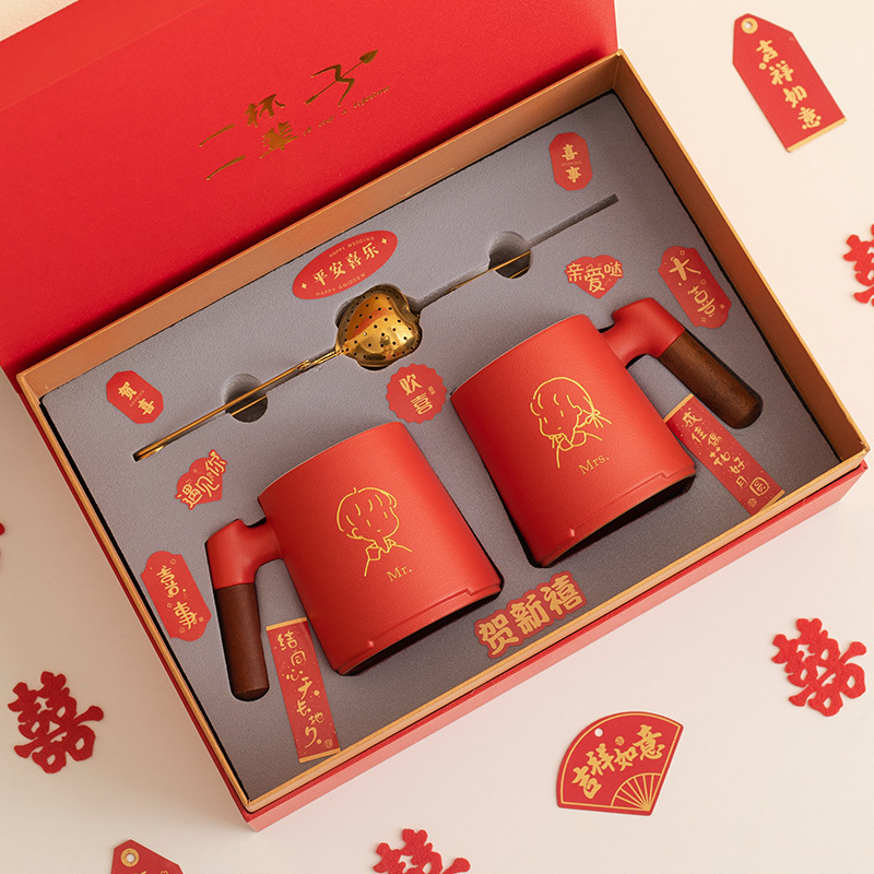 結婚プレゼントは花嫁カップルのコップとマグカップのコップをプレゼントします。