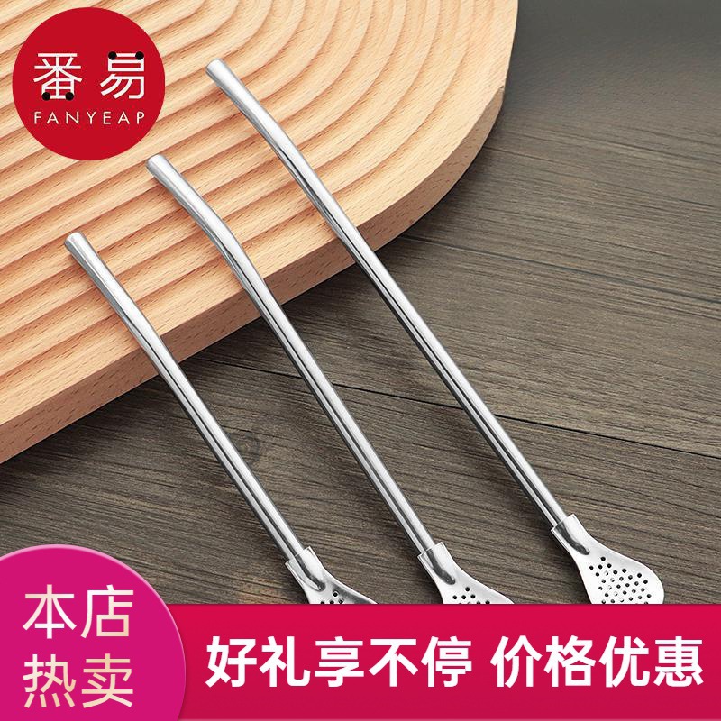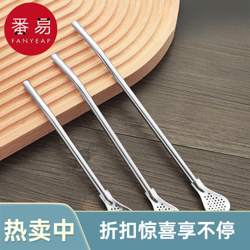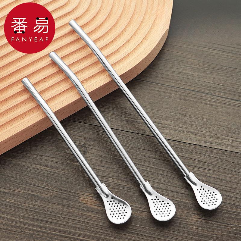 小包/ストロースプーンA1V-ミルクティー撹拌ろ過一体両用コーヒージュース茶飲非使い捨て