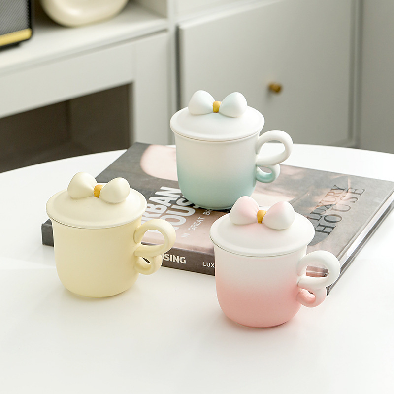 水杯学生高颜値創意蝶結びマグカップ高颜値陶磁器水杯ビジネスお土産プレゼント