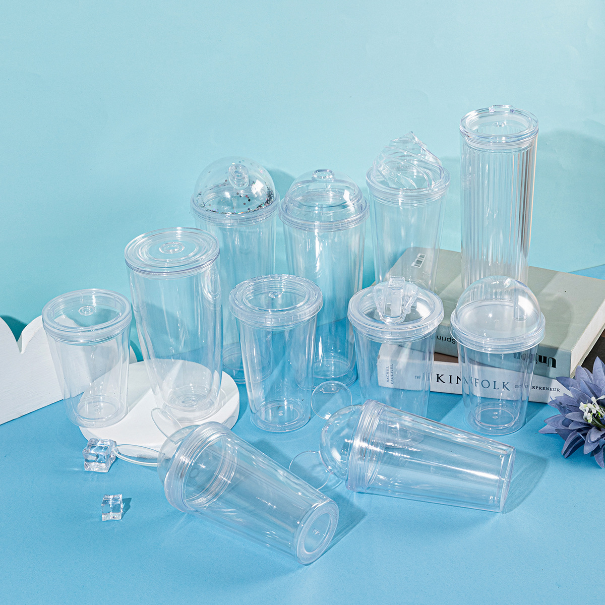 新型シンプル透明プラスチックコップ卸売り創意二層プラスチックコップ屋外スポーツストロー付きコップ