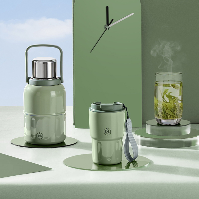 博堡優悦随行セット (保温ポット保温カップ) コーヒーカップセットフィルター付きグリーン