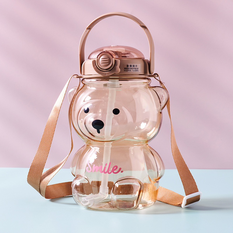 1000ml大容量子供熊カップネット赤カップ大腹カップ透明携帯かわいいアニメ宇宙カップ