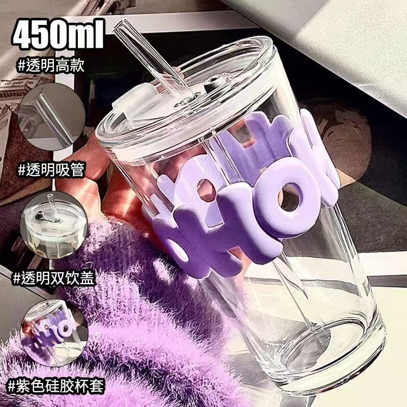 クリエイティブアルファベット高颜値カップルカップ個性軽豪華ストローガラスカップ姉妹カップダブルドリンクかわいいコーヒーカップ