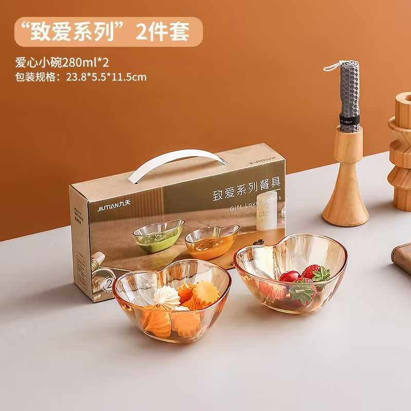 9日間の愛のシリーズの琥珀色のハート型のガラスのセットの食器の家庭用のコップの扉の赤い吉祥の贈り物