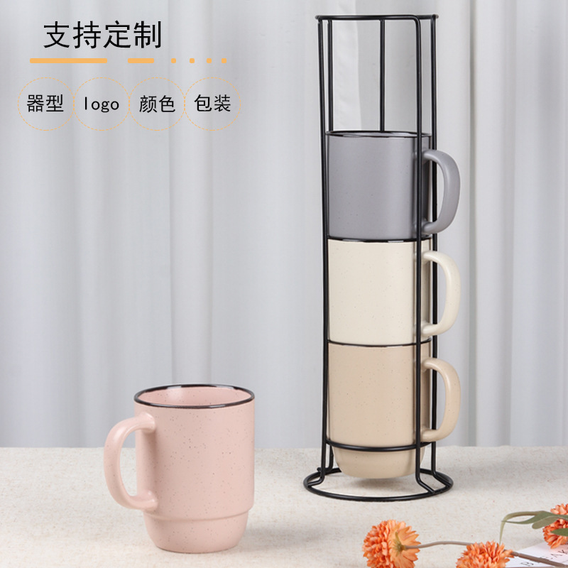 4個セット シンプル カップルカップ コーヒー スタッキングカップ セラミックマグカップ 大容量 ブラックメタルスタンド付き