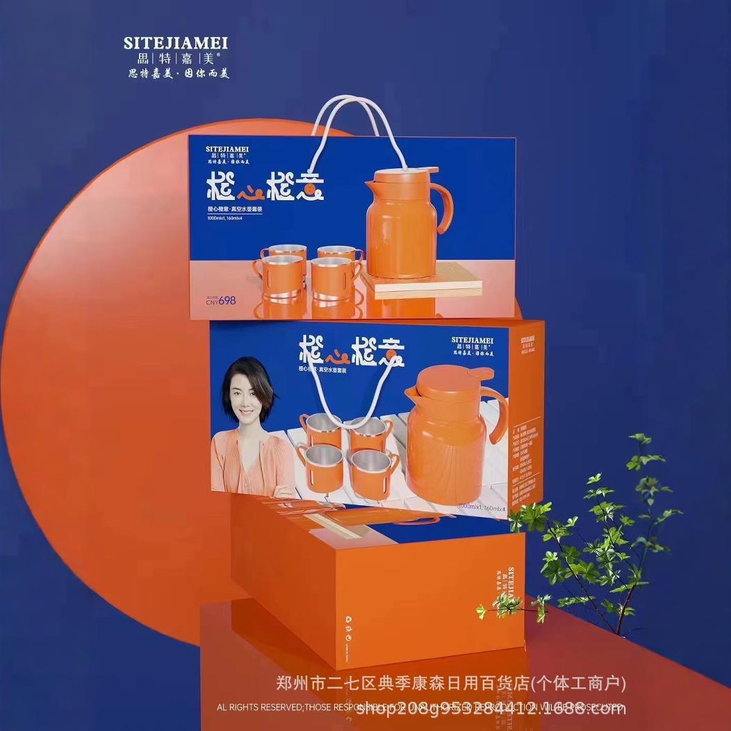 思特嘉美橙心橙意真空水筒セット家庭用一壺四杯の蒸し器はプレゼントを印刷できます。