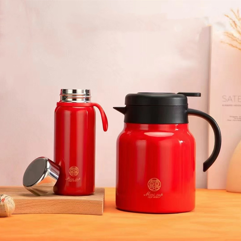 麦得豊蒸茶は中国紅喜結良縁水杯保温ポットセットの古い白いお茶を入れてステンレスの水筒に入れます。