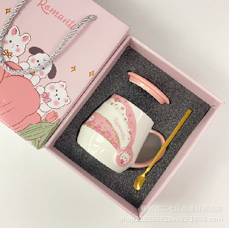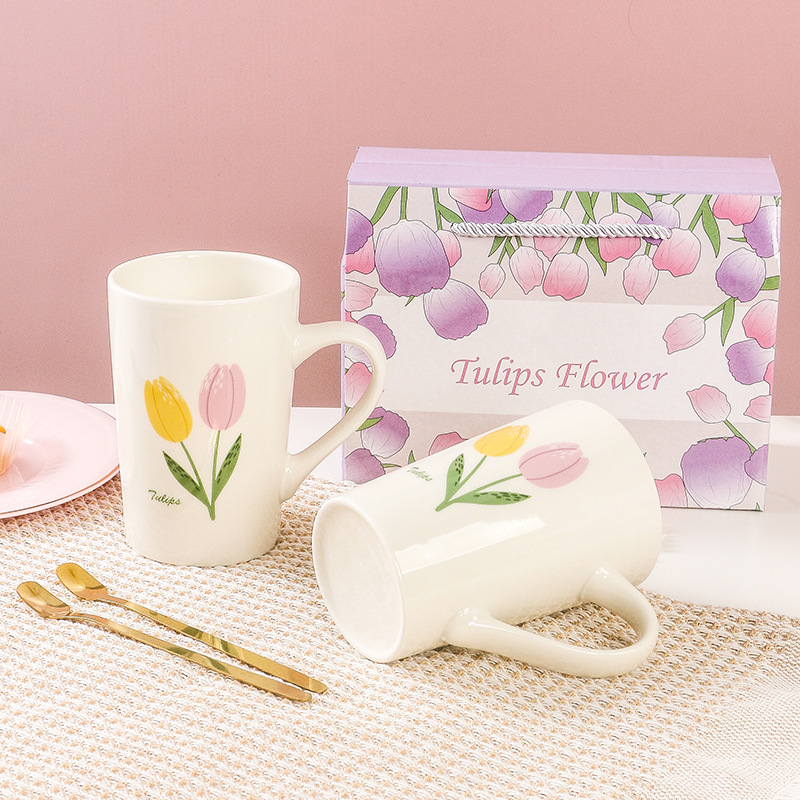 クリエイティブインスタ风レディースチューリップカップルセットセラミックカップお土产ベアタオルギフトボックスプロモーションギフト
