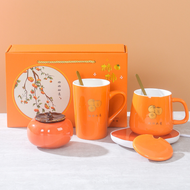 茶水分離蓋付き陶磁器カップ柿茶葉缶ギフトボックスセット国潮ビジネス企業福祉プレゼント