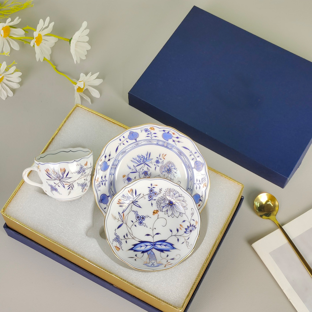 メイソンミニブルーカップ皿3点セットスイーツ店花柄コーヒーカップケーキ皿実用中秋節プレゼント