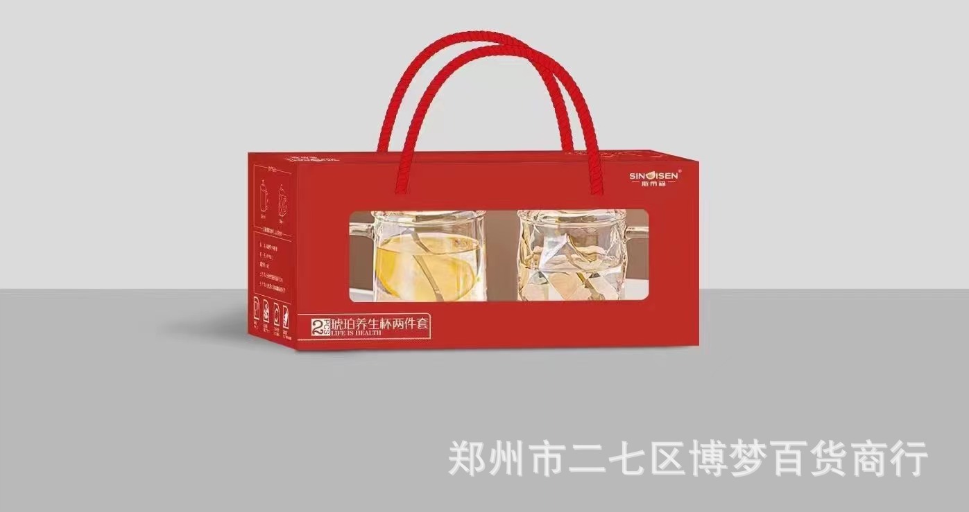 琥珀ガラス朝食カップ家庭用ベルトジュエリーギフトボックス包装客先プレゼント広告カップ大容量ベルト