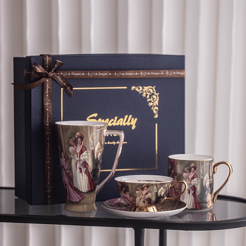 誕生日プレゼントは彼女に親友の骨磁器コーヒーカップセットをセットして、高颜値insヨーロッパ式レトロなカップをセットします