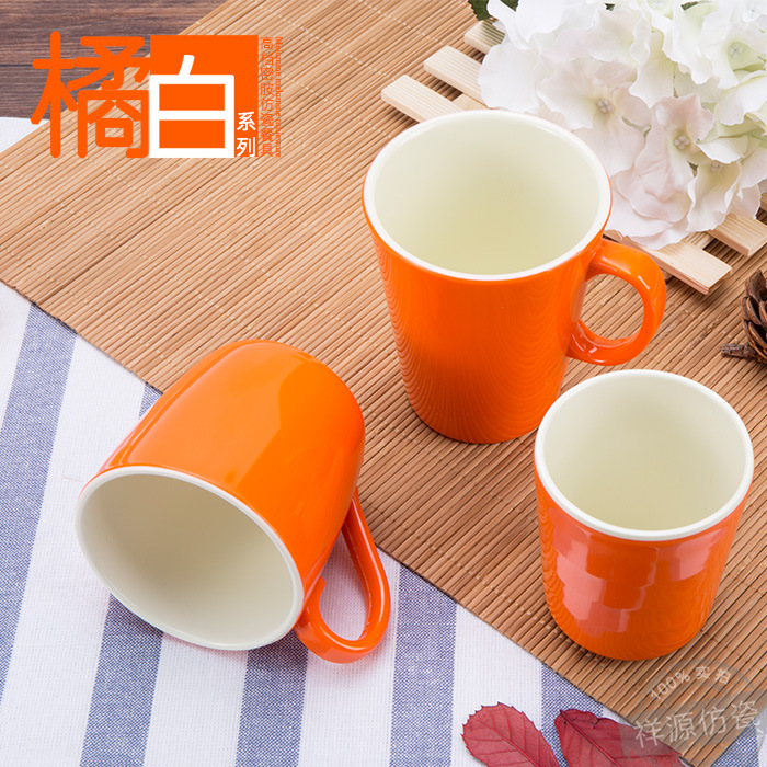 メラミン食器コップのコップは磁器のプラスチックのファーストフードの店のホテルの口の杯の湯飲みをまねて耳をつけてカップのお茶のコップを投げます。