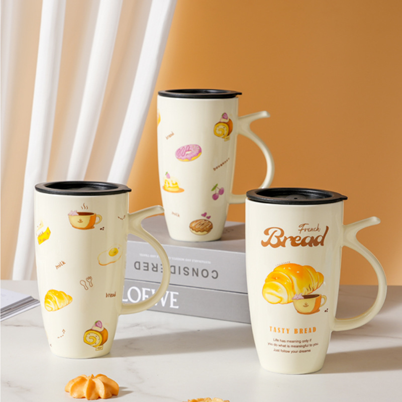 ドーナツパンと恋愛カップルの陶磁器マグカップ男女朝食カップ高颜値癒しカップ