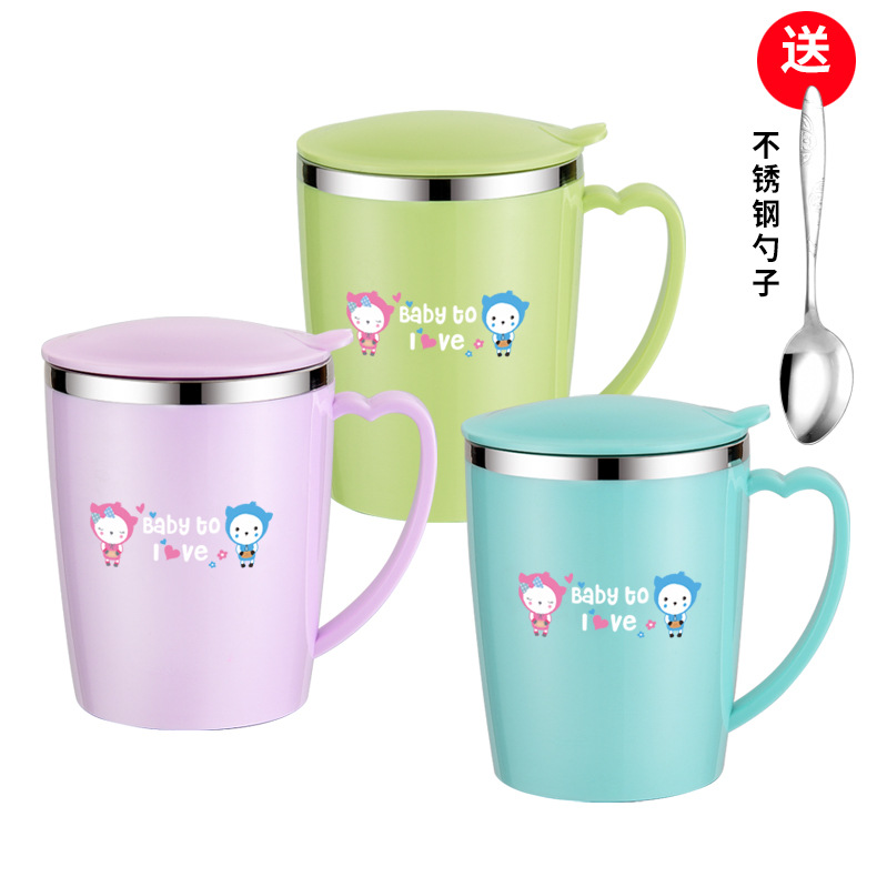 304ステンレス大容量蓋付き溢れ防止ミルクティーカップ韓国式清新児童成人事務用飲水コーヒーカップ