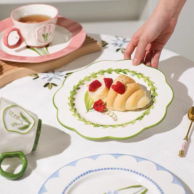 フランス式レリーフすずらん皿日本式カップ手描きカップ陶磁器カップカップマグカップ朝食カップコーヒーカップ卸売り