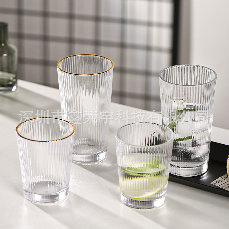北欧の軽い豪華な縦縞のガラスのコップの復古のins風のグラスのネットの赤いコーヒーの杯の家庭用ジュースのコップ