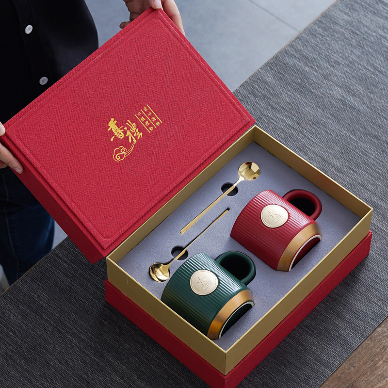 赤い本の創意的な陶磁器のマグカップセットの高級ギフトボックスの朝食カップのコップの大容量のお土産は日本式です。