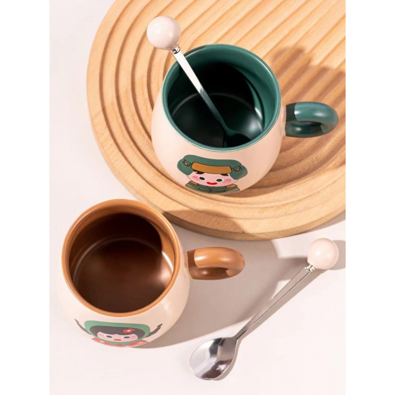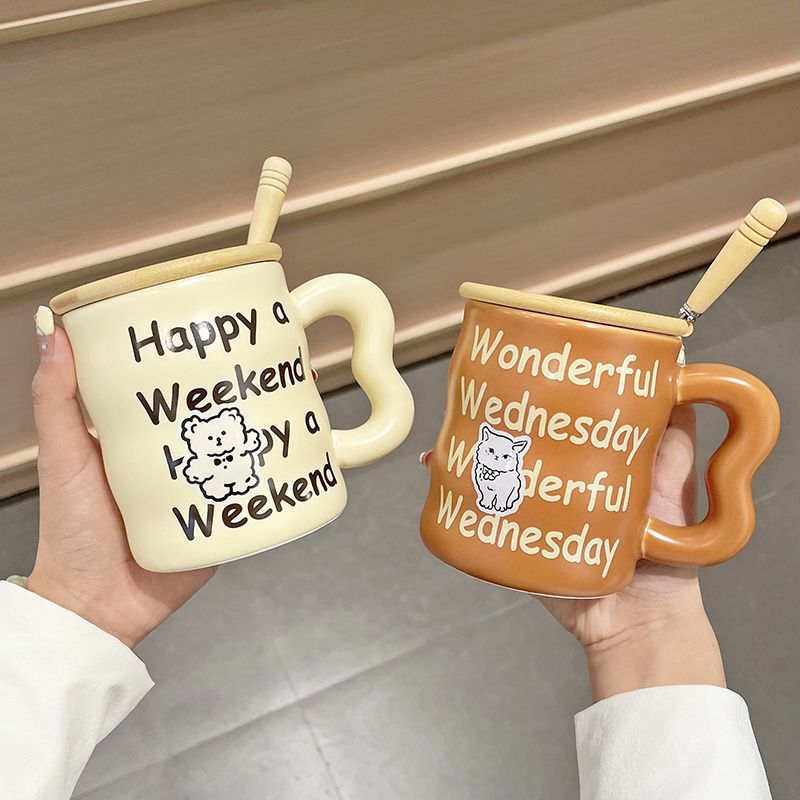 カップ陶磁器マグカップ蓋付きスプーン高颜値家庭用学生朝食カップ小衆カップル男女水杯昌震
