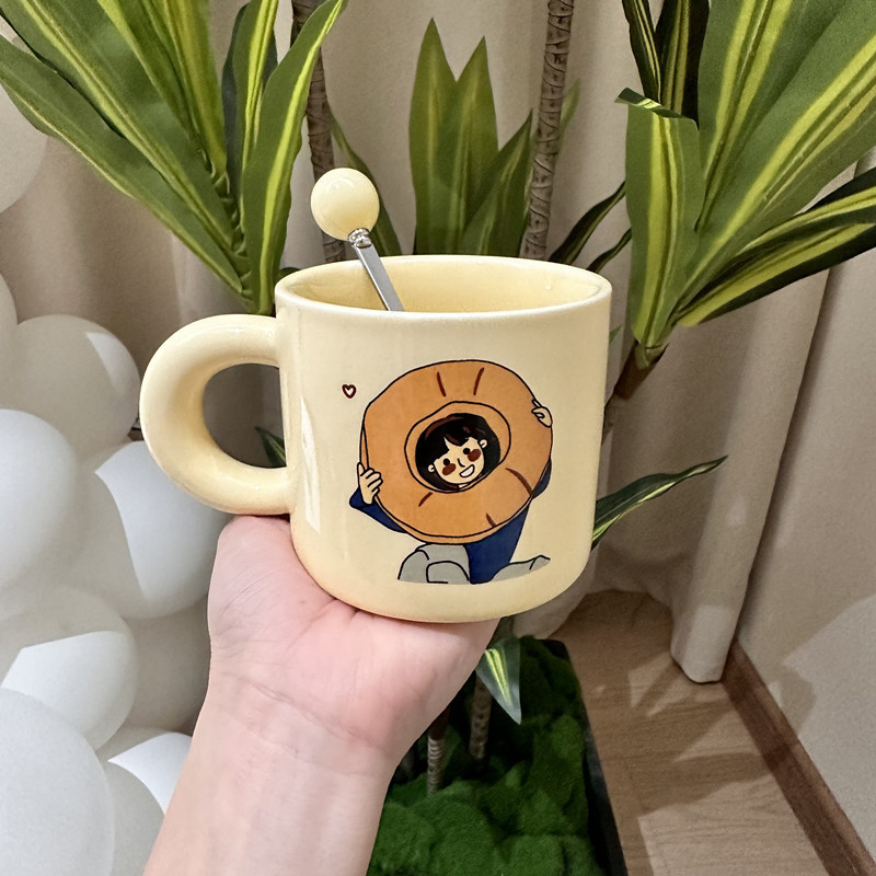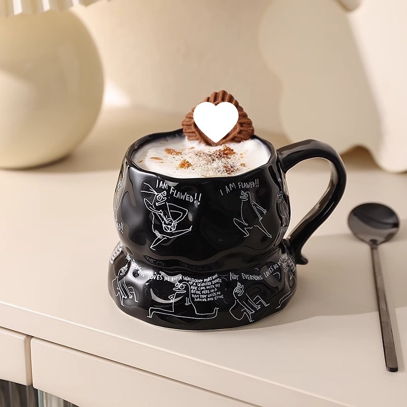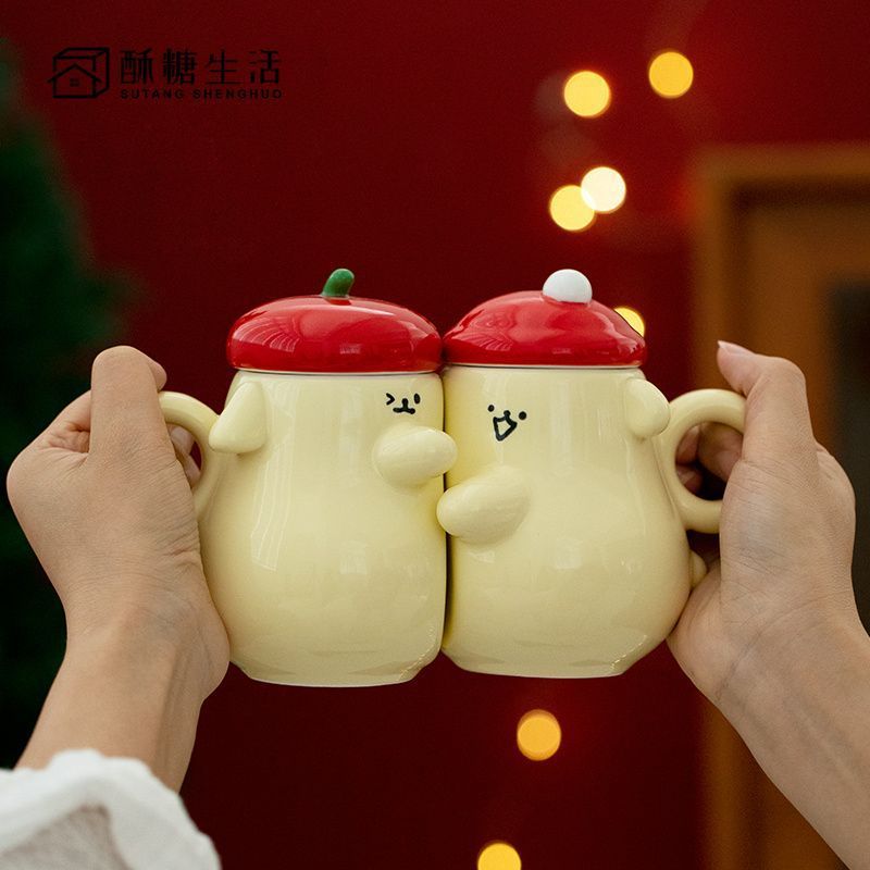 ins卡通情侣水杯子一对高颜值陶瓷马克杯小众生日牛奶早餐杯