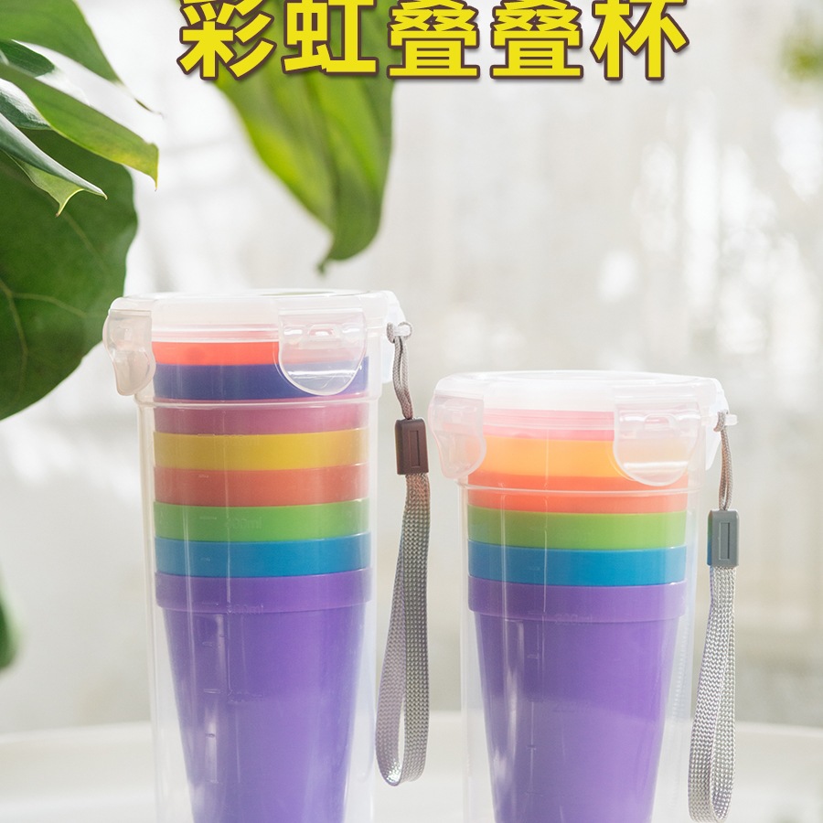旅行便携彩虹杯套装密封杯户外野餐旅游郊游喝水杯儿童学生杯叠杯