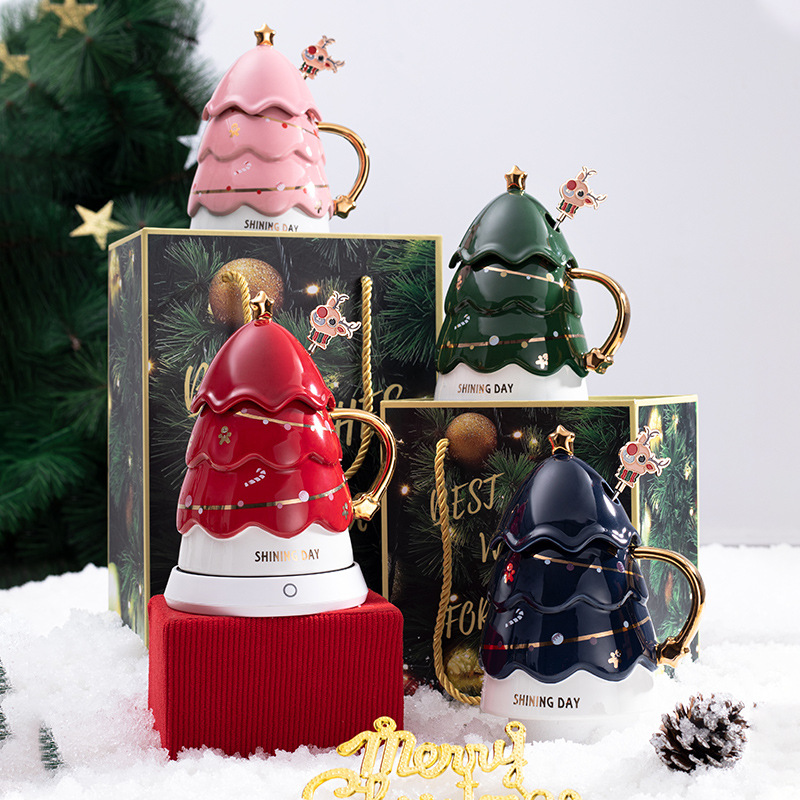 クリスマスツリーのカップセットのギフトボックスはカップルのコップをプレゼントします。