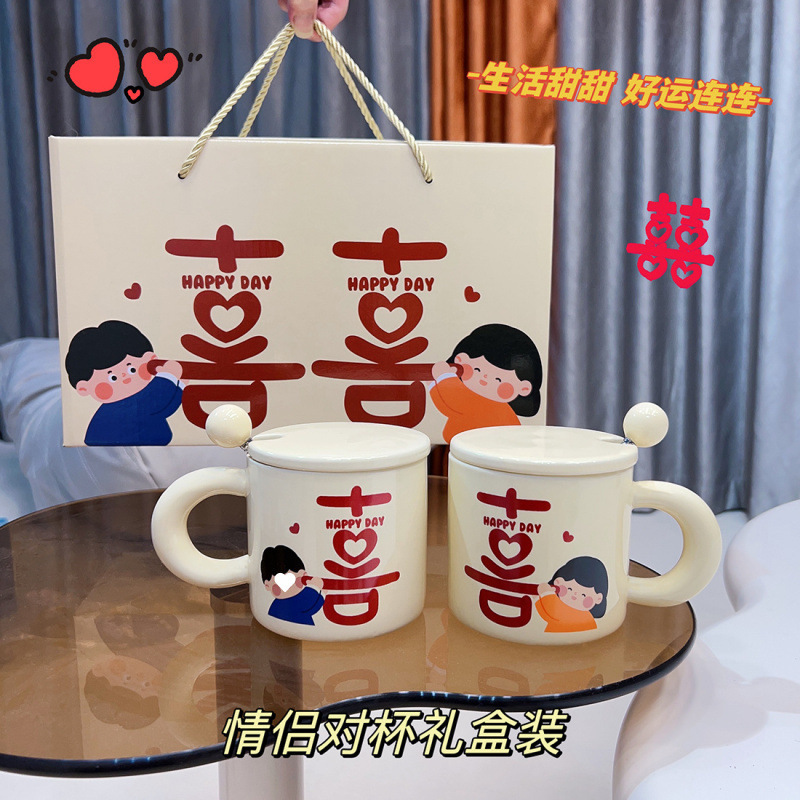 ハッピーカップルウォーターカップペアセラミックマグニッチネーレトロ新婚高温耐性ミルク朝食カップシンプル