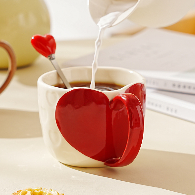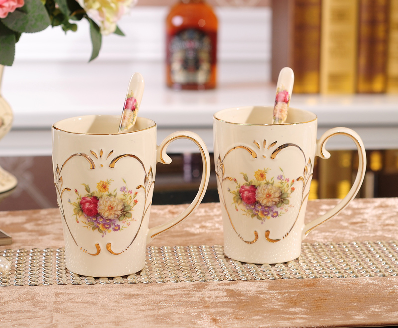 ✅欧式创意陶瓷杯子大容量水杯带把手简约情侣杯带盖勺咖啡杯牛奶