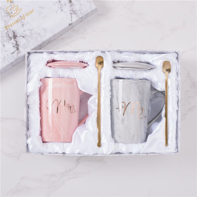 情侣对杯礼盒装新陶瓷马克杯带盖勺生日礼物送男女友闺蜜姐妹实用
