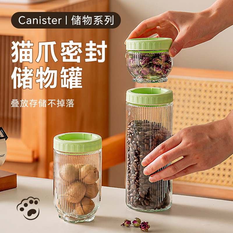 密封罐可叠加便携分装罐防潮杂粮谷物收纳盒干果坚果猫爪储物罐