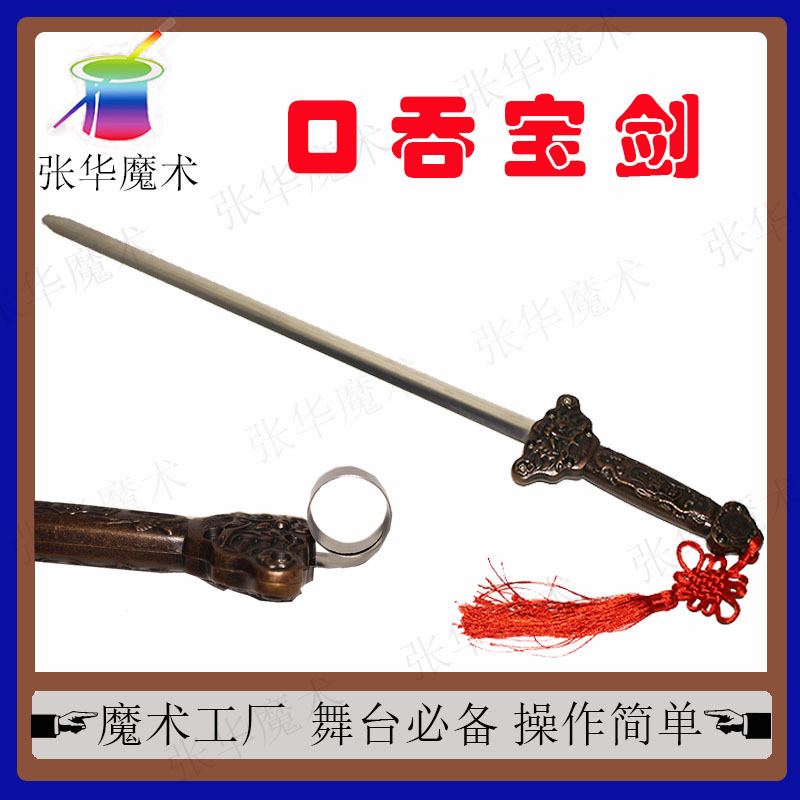 張華の魔法の小道具、口で剣を飲み込む、金属の剣、ステージのスリル満点の魔法の剣、刃のない小道具の魔法の剣