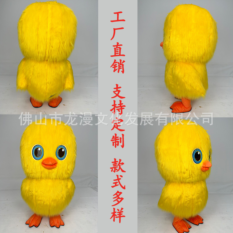 震え音の同じタイプのぬいぐるみの長い毛のかわいいニワトリの空気の服装の漫画の黄色のニワトリの舞台のパーティーは空気の服装を実演します。