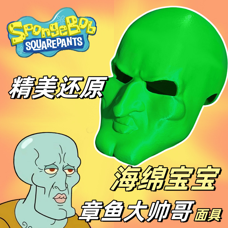 スポンジの赤ちゃんのタコの兄のスポンジボブのタコの大きいイケメンマスクの頭はお笑いのマスクをかぶせます。