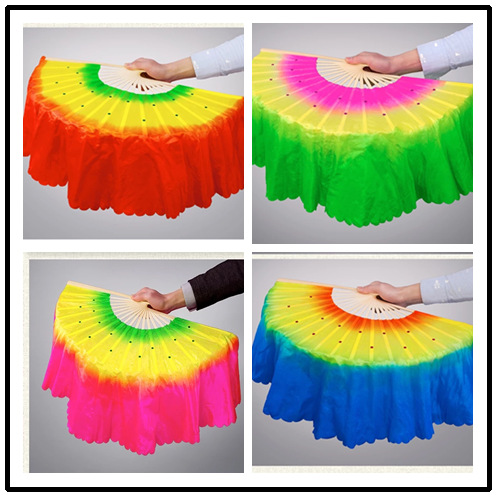 ダンスの扇子の七色のグラデーションの両面の延長のダンスの扇風機の広場のダンスの女性の扇子はヤンコの歌の古典のダンスをねじって開きやすいです。
