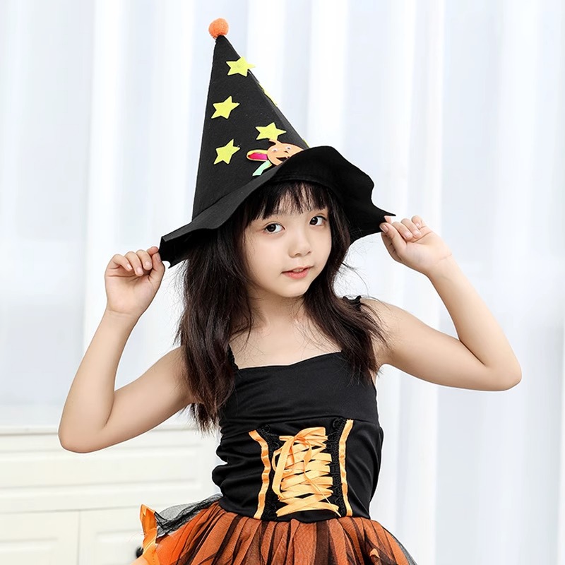 国境を越えた卸売りハロウィーン帽子卸売り魔女パーティー装飾角網糸カボチャプリント魔法使い魔女