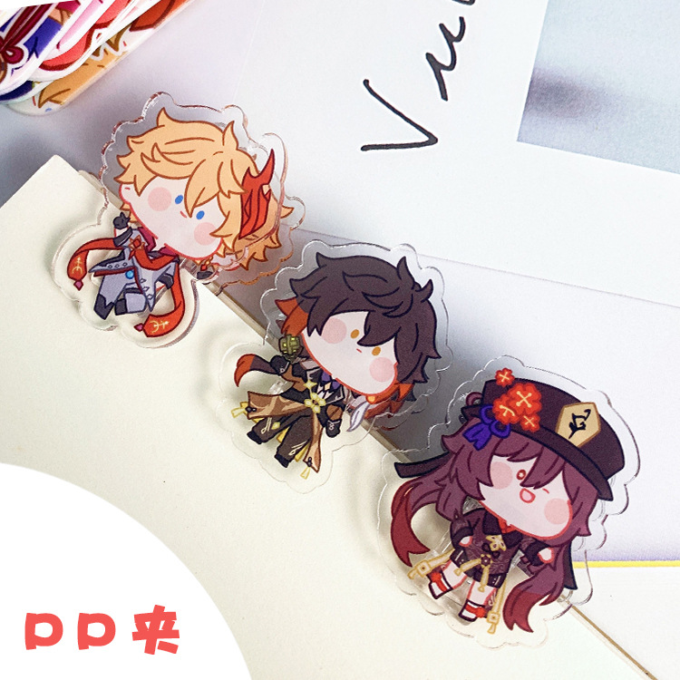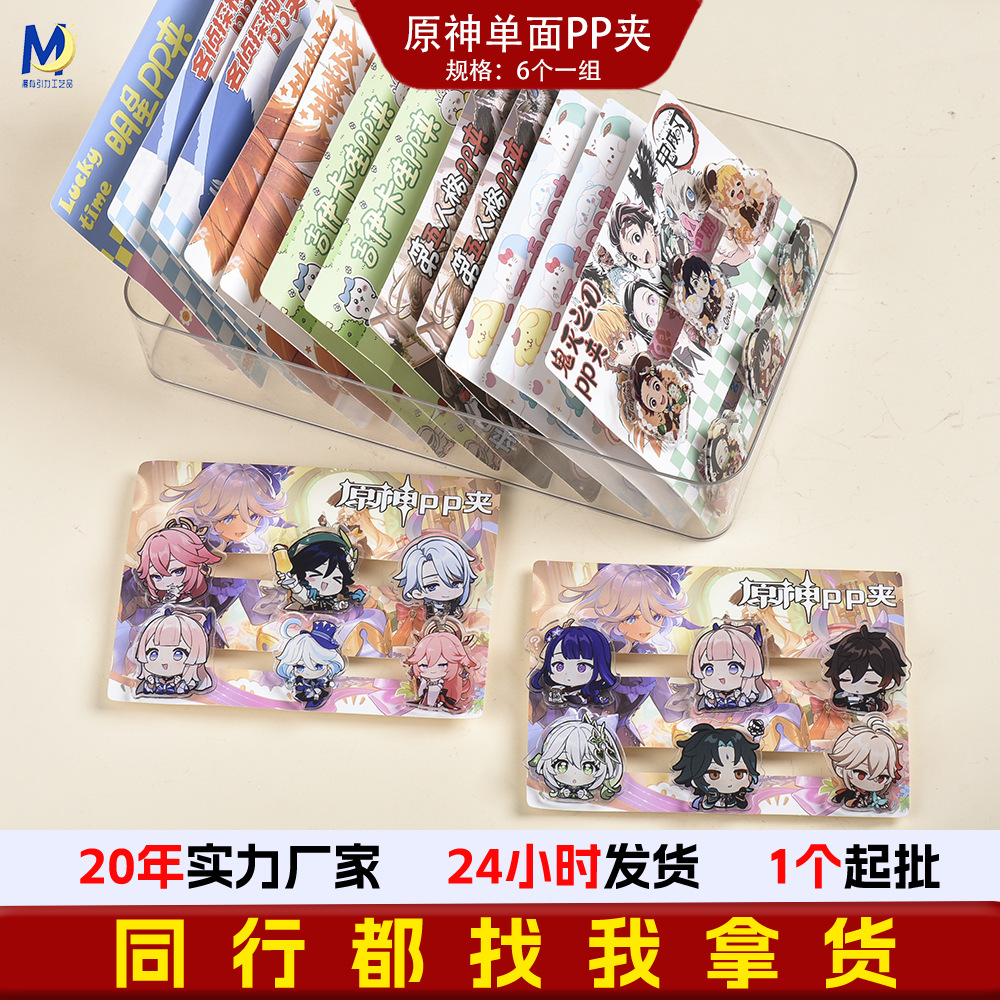 原神片面PPクリップ 学習・オフィス用 漫画風可愛いクリップ 試験用メモ アクリル製デスクトップデコレーションクリップ