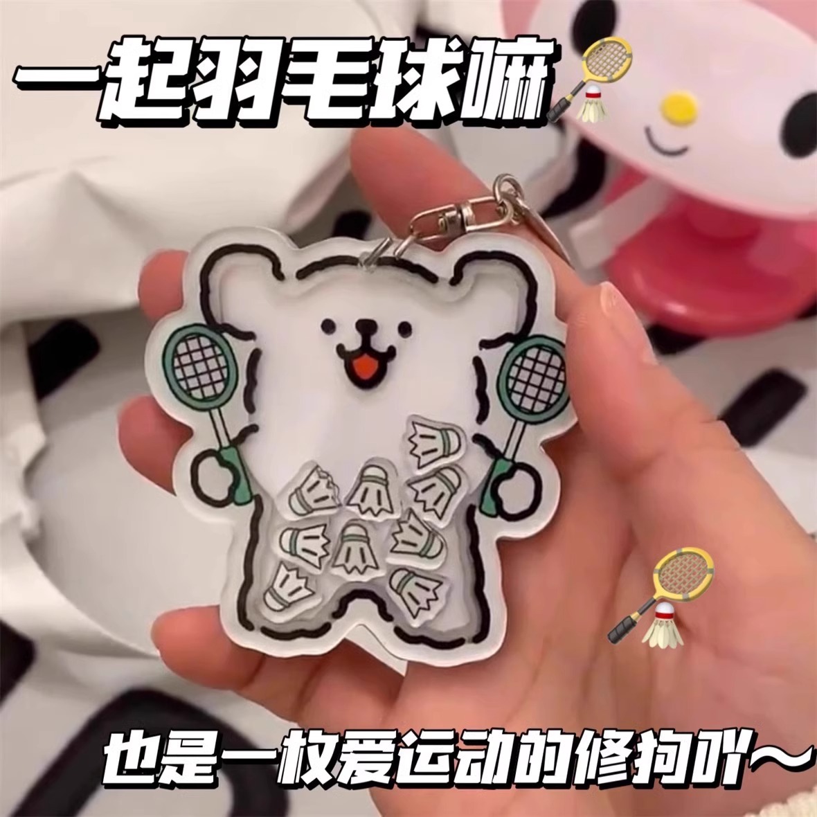 クリエイティブライン子犬バドミントンシェイクキーホルダーかわいいアクリル学生スクールバッグカードブックペンダントギフト