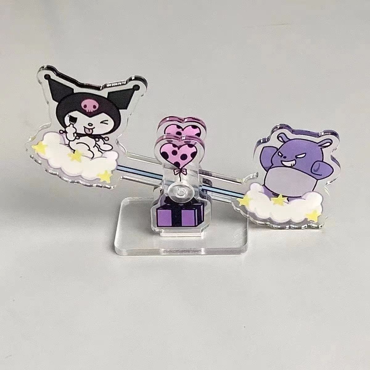 クロミのシーソーのキャラクターのアイデアのアクリルのテーブルの置物のかわいいスタンドのクレヨンの小さい新しいブランコのシーソー