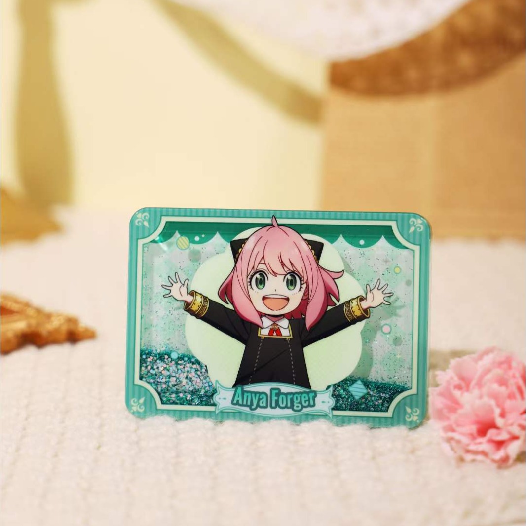 スパイのままごとのアクリルの流砂のマージャンの2次元のアニメのデスクトップの置物は解凍して周辺を減圧します。