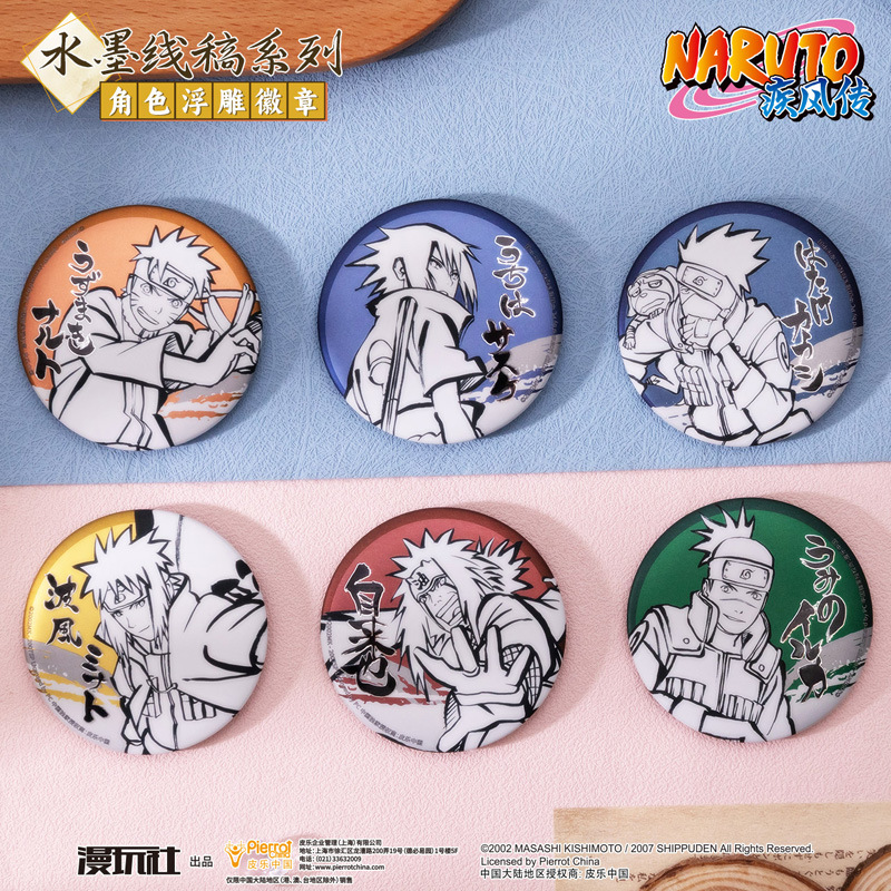 星河アニメ火影忍者渦ナルト宇智波佐助水墨線稿シリーズバッジブローチ