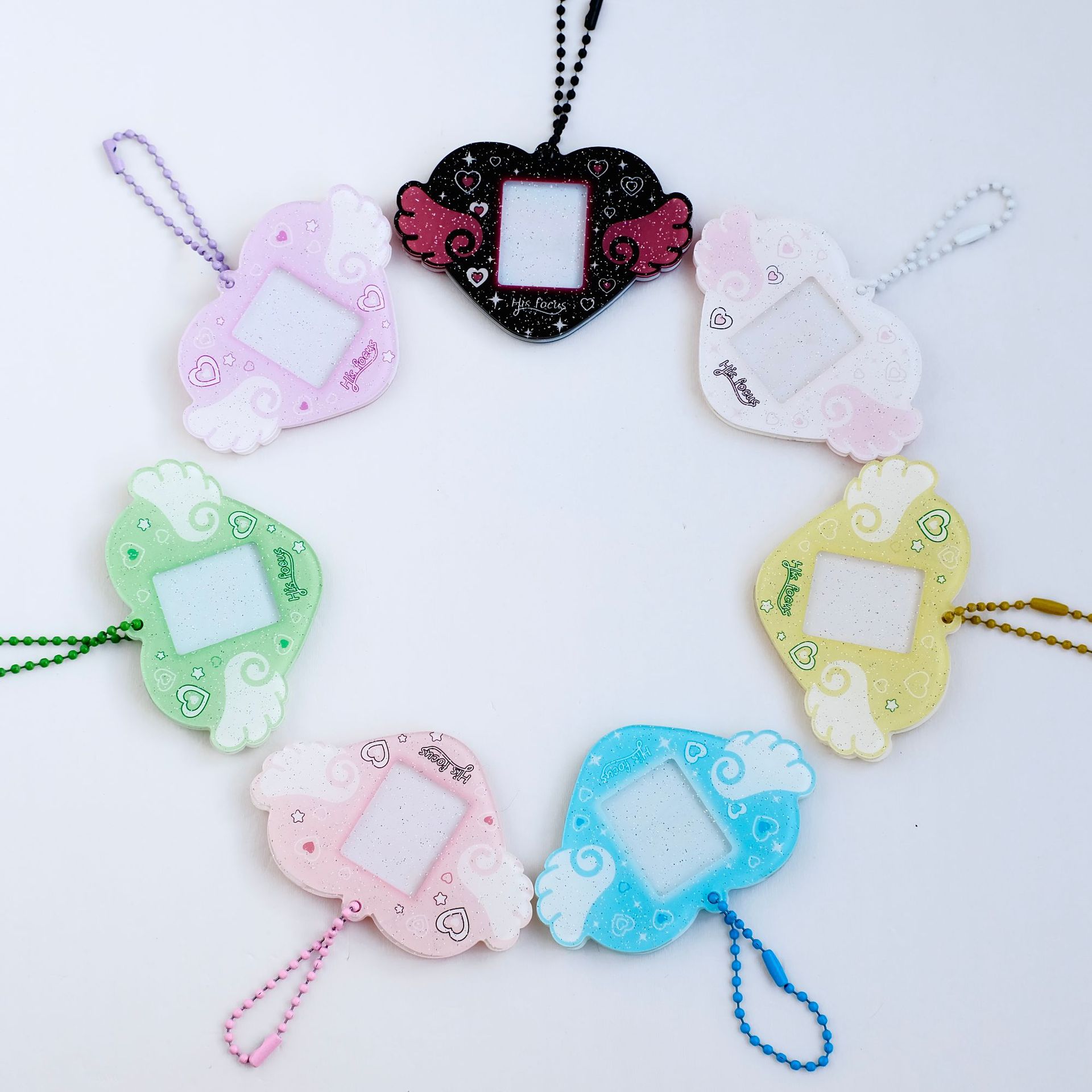 著作権インクルード エンジェルウィングス 中空フォトフレームペンダント 学生用ハート型キーホルダー 1inch 証明写真用フォトフレームペンダント