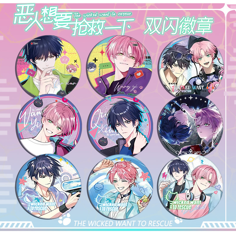 悪人は1-12ペアのフラッシュバッジを救いたいです 無地レーザーシルバーオニオン 75mm58mm アニメバージ