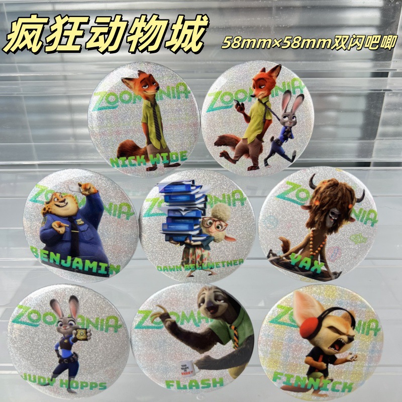 狂った動物城双閃バッジバーニック狐朱迪兎稲妻かわいい漫画ブリキかばんストラップ