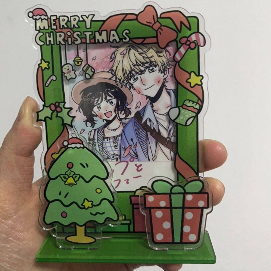 クリスマスフォトフレーム漫画クリスマスツリーアクリルフォトフレームカードスタンドアイドルフォトカードデスクトップ装飾品