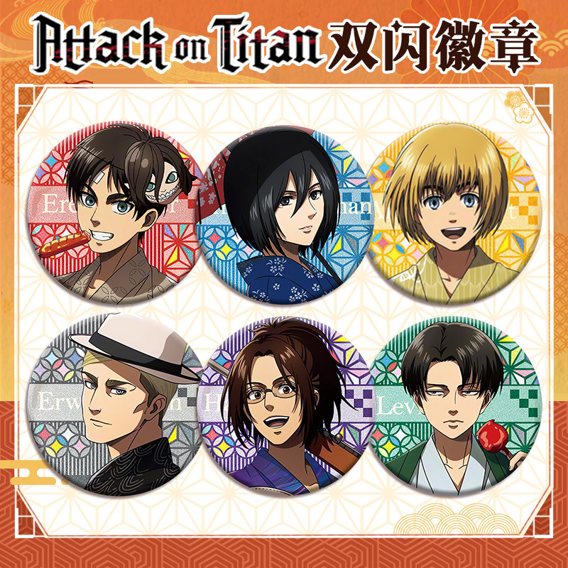 進撃の巨人201シリーズダブルフラッシュバッジ219-224素面レーザー銀ネギ75mm 58mmアニメバー