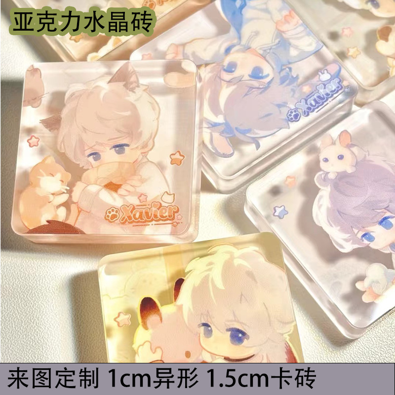 アクリル透明クリスタルレンガ小さなカードレンガカスタムカラー肥厚小さな粒漫画二次元デスクトップ装飾品